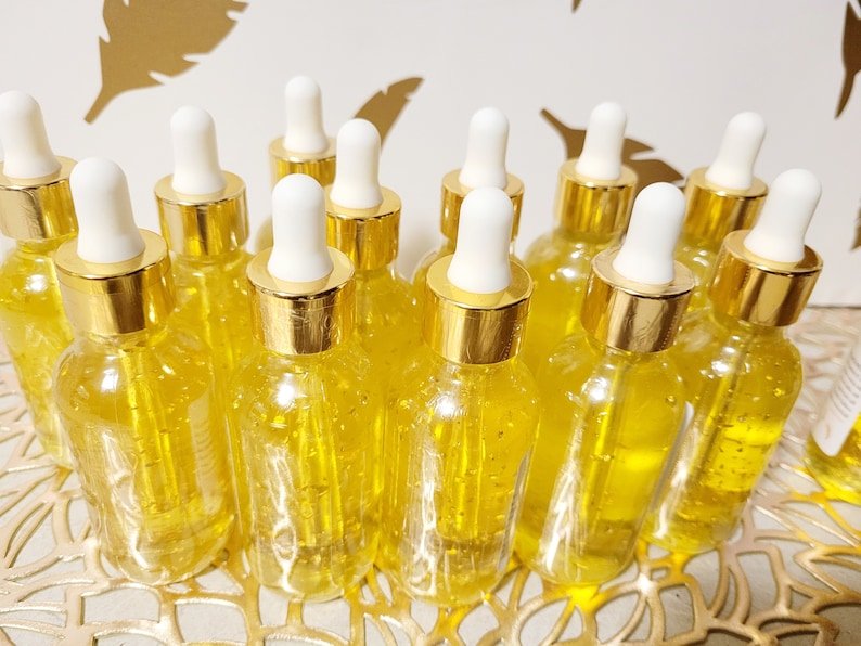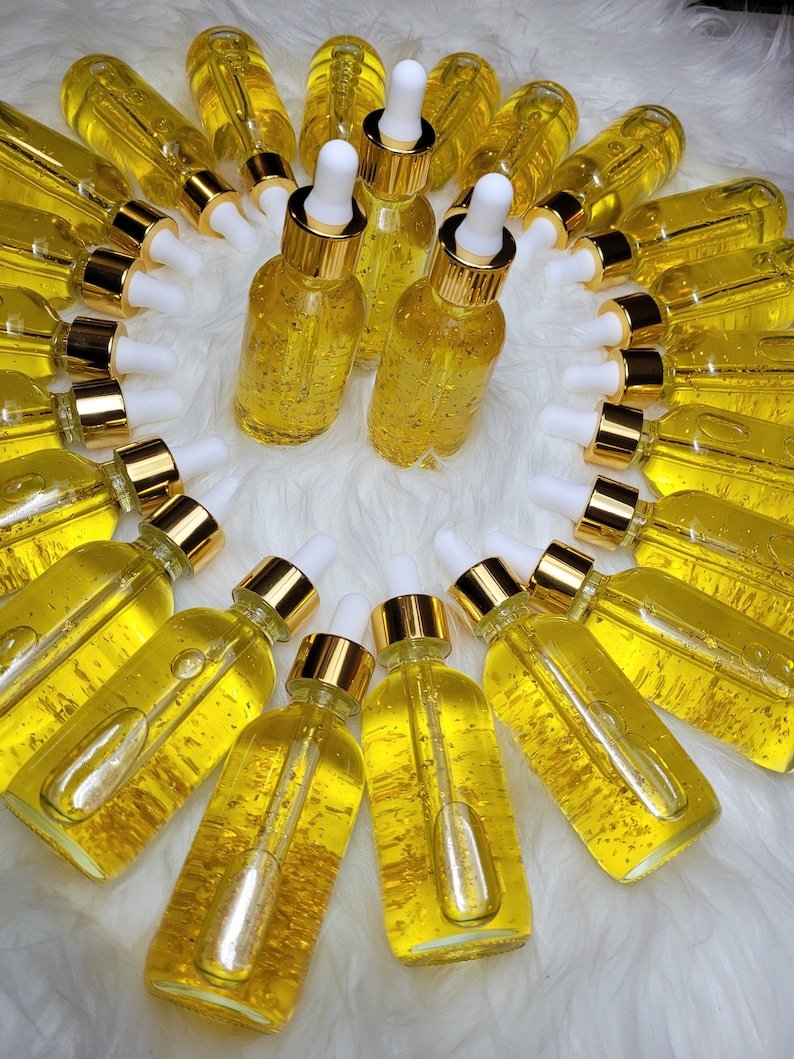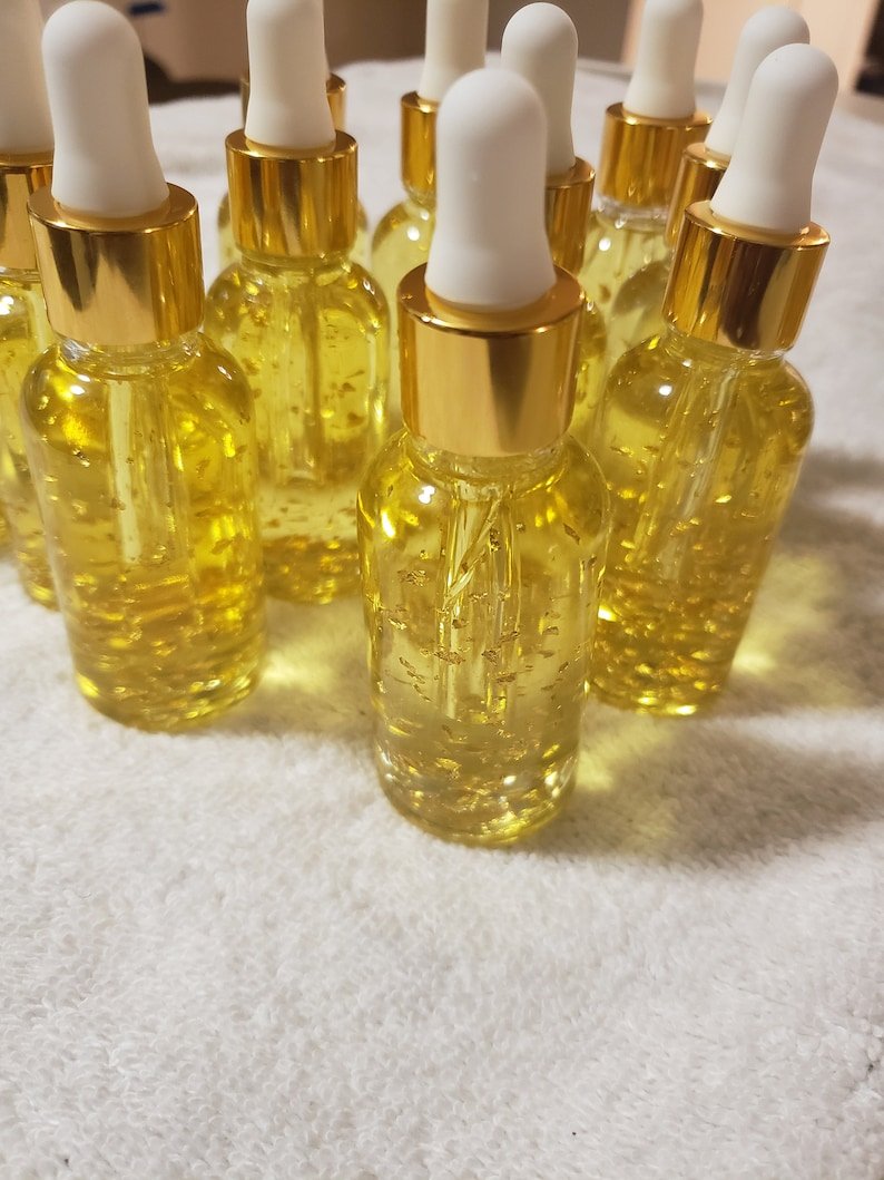 The 24 Karat Serum Rejuvenates, Nourishes and Heals Dark Spots On Your Skin..The Serum Is Formulated With Gold Flakes To Fight Fine Lines And Wrinkles And Leave Your Skin Moisturized And Glowing. All of These NATURAL Oils Have Great Benefits To the Skin… GET READY TO GLOWWWWW